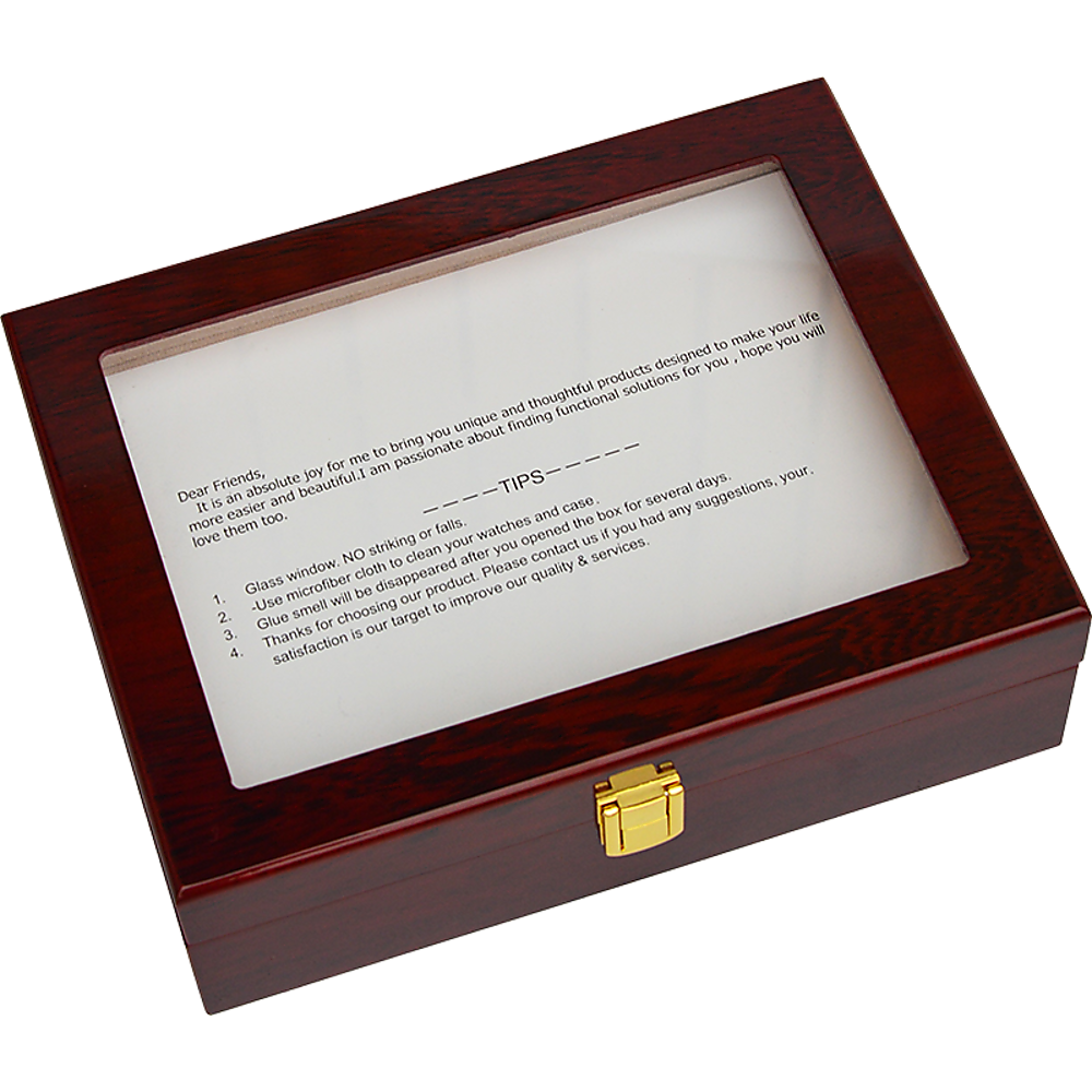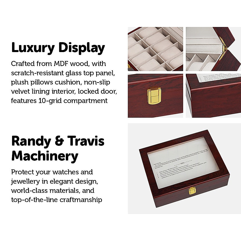 10 Grids Wooden Watch Case Glass Jewellery Storage Holder Box Wood Display