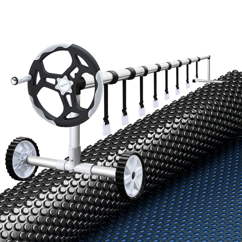 Aqua Buddy Pool Cover 600 Micron 8.5x4.2m w/ Roller 5.55m Swimming Pools Black Solar Blanket