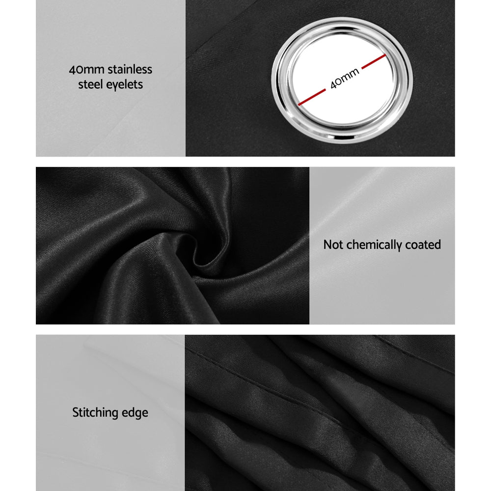 Artiss 2X 132x304cm Blockout Sheer Curtains Black