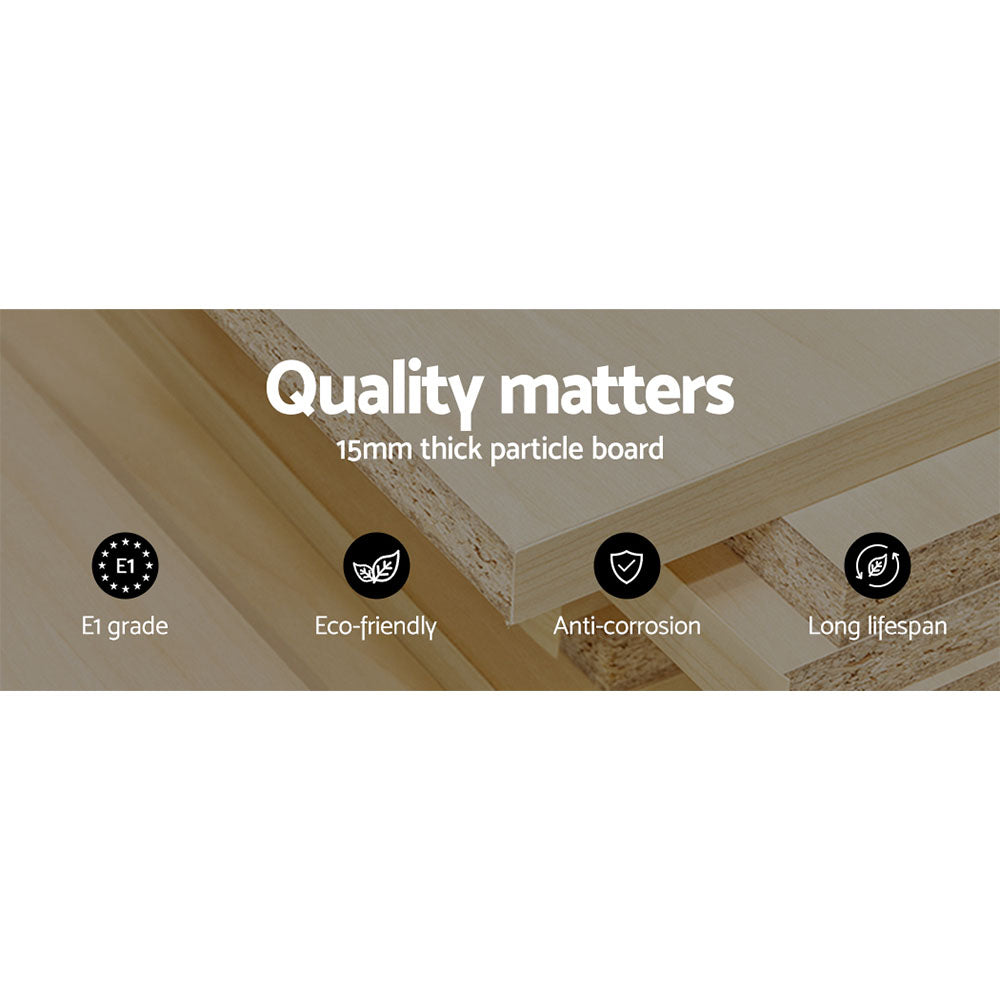 Want to add a WOW-effect to your living room? Our Artiss LED entertainment unit won't disappoint you. Boasting a unique combination of functionality and creativity, this entertainment unit is designed to enhance your living space and create a pleasant ambience. The entertainment unit features built-in RGB LED lighting that you can customise into 16 different colours and four flashing modes with a touch of a button. It will perfectly complement your modern home decor and enable you to achieve a one-of-a-kind look. Having been constructed from 15mm thick particle board with UV high gloss on the front and melamine finish, this piece of furniture is quite sturdy and will withstand the test of time. It has spacious drawers with smooth metal runners for hassle-free operation and two tempered glass shelves to store all your entertainment paraphernalia. Bring this uniquely designed entertainment unit for your home today.