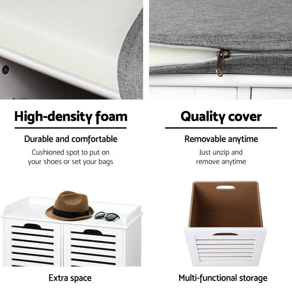 Artiss Fabric Shoe Bench with Drawers - White & Grey