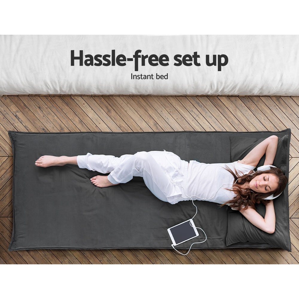Forget about beanbags! The Artiss floor lounge sofa makes a perfect piece of furniture for chilling with friends. It allows you to create a beautiful and cosy sitting space anywhere effortlessly. So if you're tired of blow-up mattresses or uncomfortable beanbags, then you'll love our floor lounge. Our floor lounge is all about comfort, versatility, and beauty. It comes in gorgeous charcoal that will complement any space. Plus, its soft cushioned seat makes it quite comfortable to relax. Our floor lounge sofa features heavy-duty steel frame with premium microfibre fabric for durability and comfort. It boasts a convenient foldable design that enables you to fold it when not required. This makes it perfect for small spaces. Our floor lounge sofa can be adjusted into different positions for added comfort and convenience. You can use our floor lounge in different ways: lie on it, sit on it, or relax with your legs stretched. Great for movie marathons, sleepovers, gaming nights, or simply for snuggling. Purchase this versatile floor lounge today.