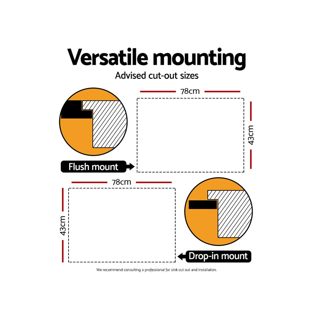 Cefito 80cm x 45cm Stainless Steel Kitchen Sink Flush/Drop-in Mount Silver