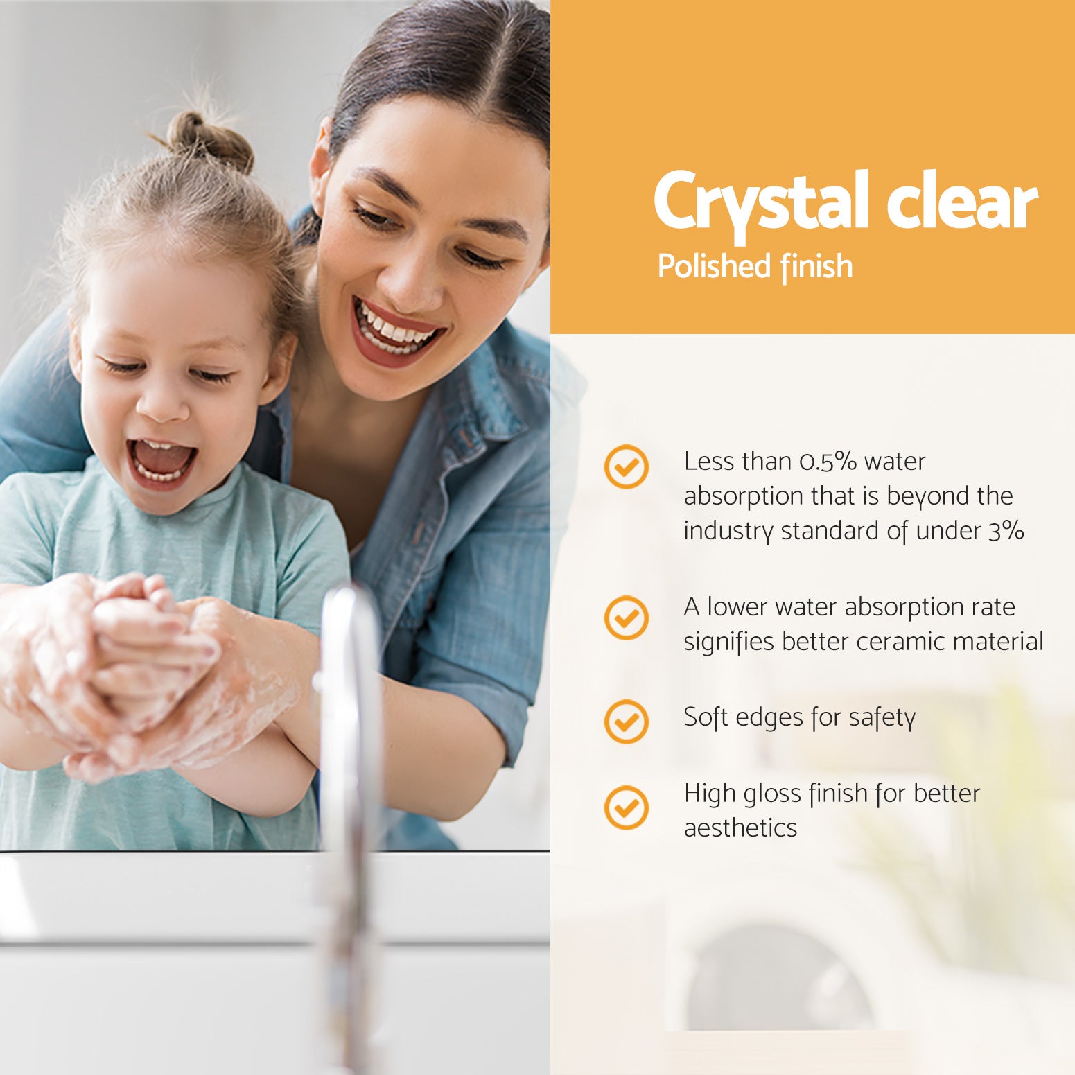 Experience luxury with our modern streamline Vanity Basin. Made with high-quality ceramic, this elegant basin is practical and odourless. Its surface is anti-scratch, anti-bacterial, and leak proof, making it easy to maintain its lustrous shine. It is also heat-resistant, wear-resistant, crack-resistant, and fade-resistant, ensuring durability and longevity. The smooth edges offer a sleek and safe appearance. Enjoy peace of mind with its 5-year warranty, and easy installation process. Upgrade your bathroom with our stunning vanity basin today.