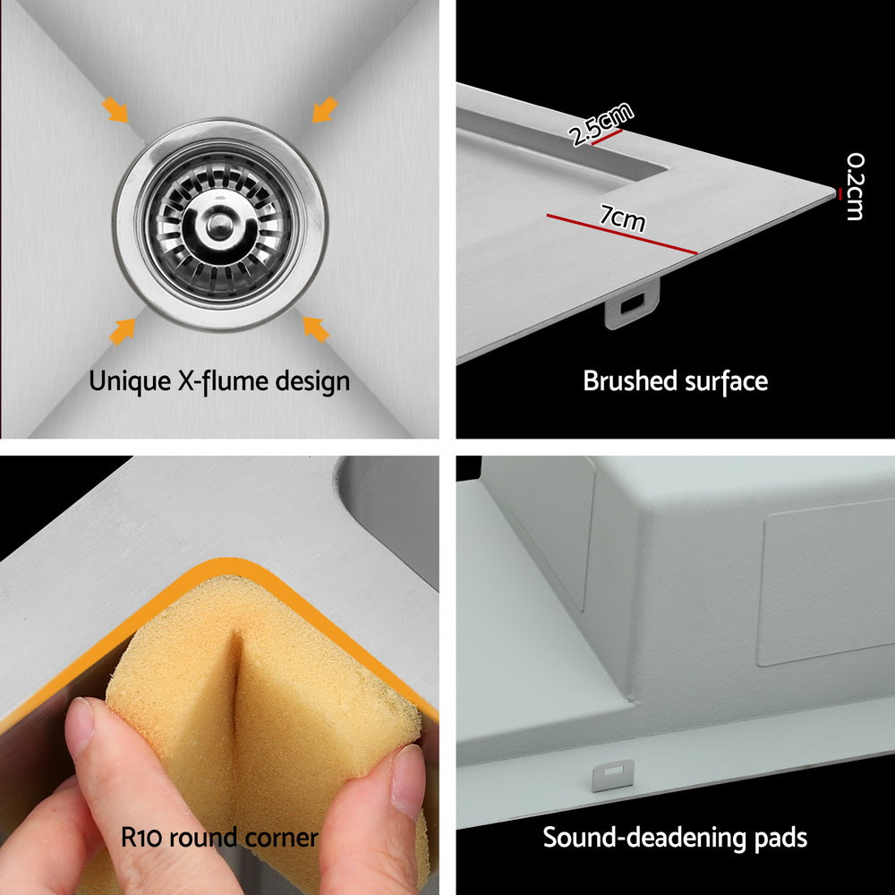 Explore our artisan-crafted Cefito stainless steel sink, built with robust 304 stainless steel. Satin-coated for a luxurious finish, it includes anti-condensation, mould-resistant paint, R10 rounded corners, and sound-deadening pads for quiet use.