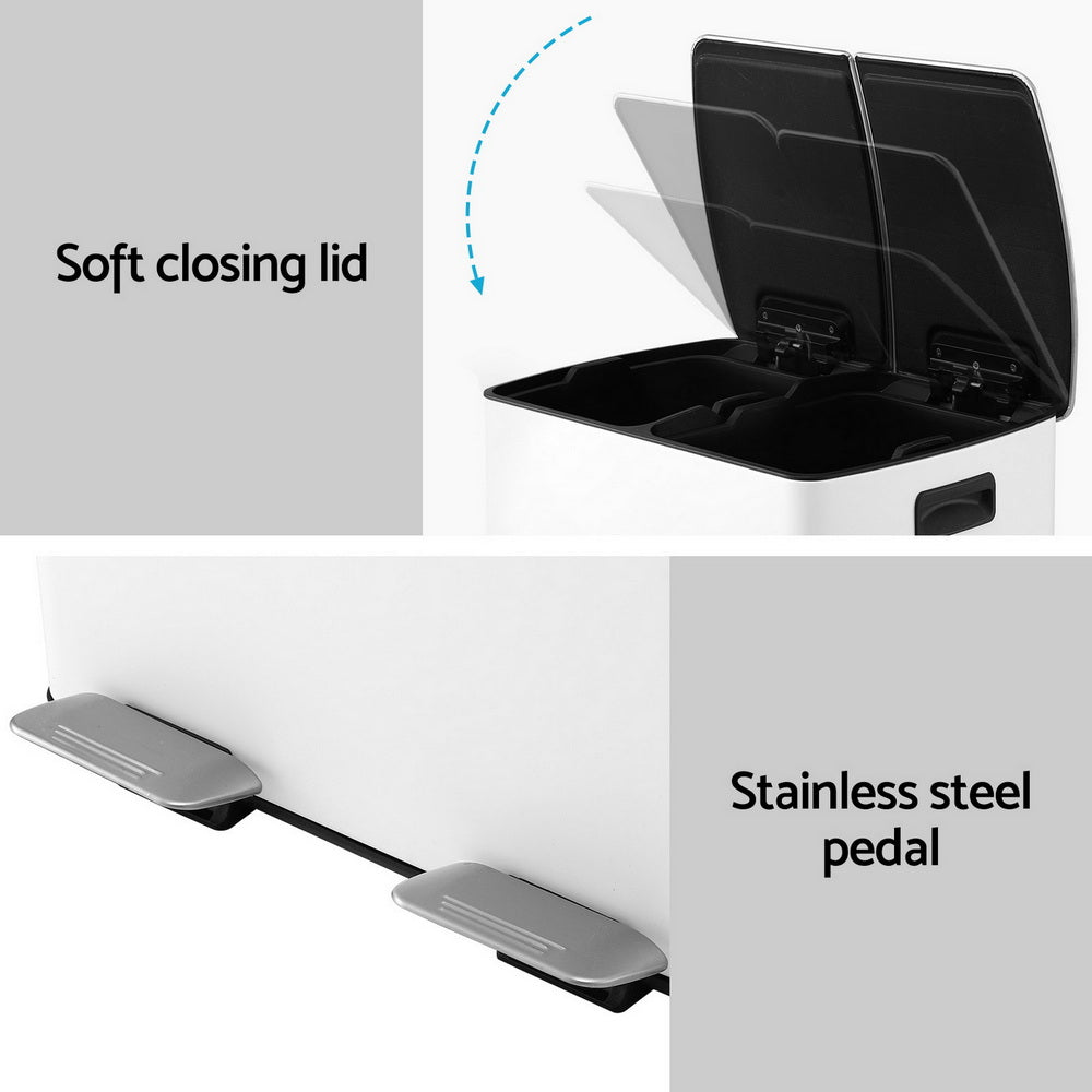 Cefito Pedal Bins Rubbish Bin Dual Compartment Waste Recycle Dustbins 40L White