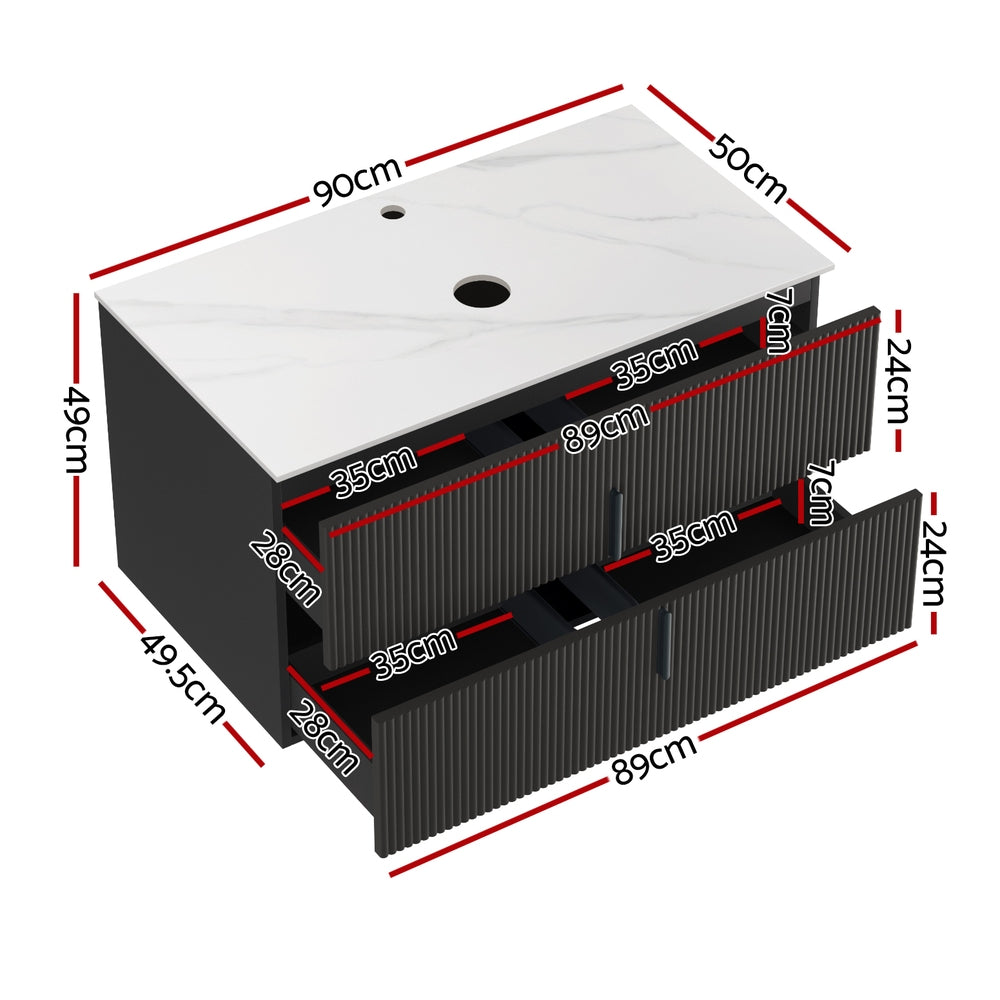 Cefito Vanity Unit 900mm Bathroom Cabinet Storage Wall Hung Black Timber Front