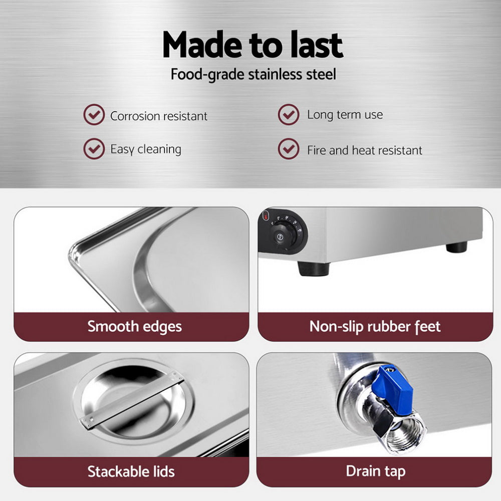 Devanti Commercial Food Warmer Bain Marie 4 Electric Buffet Pans