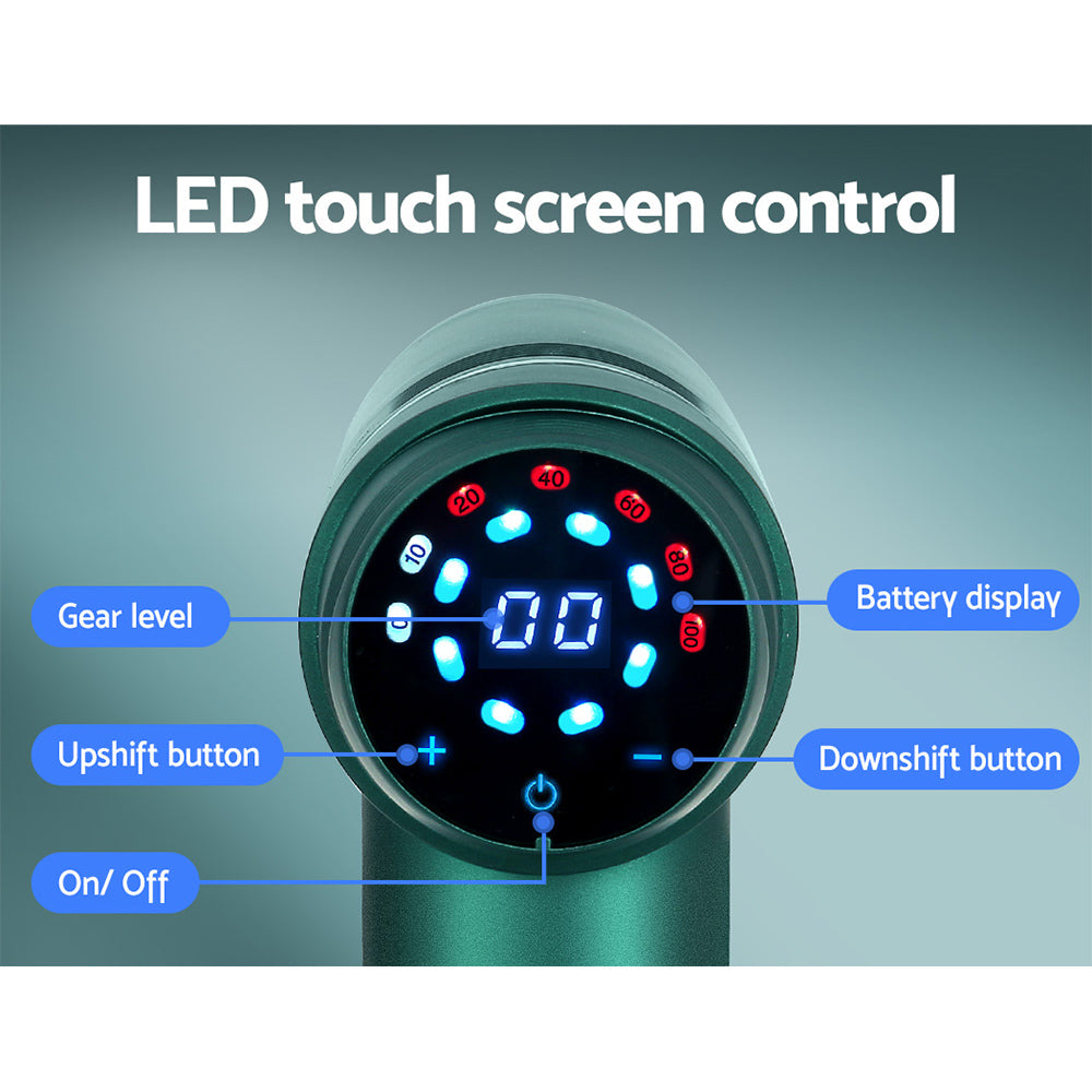 Everfit Massage Gun 30 Speed 6 Heads Vibration Muscle Massager Chargeable Green