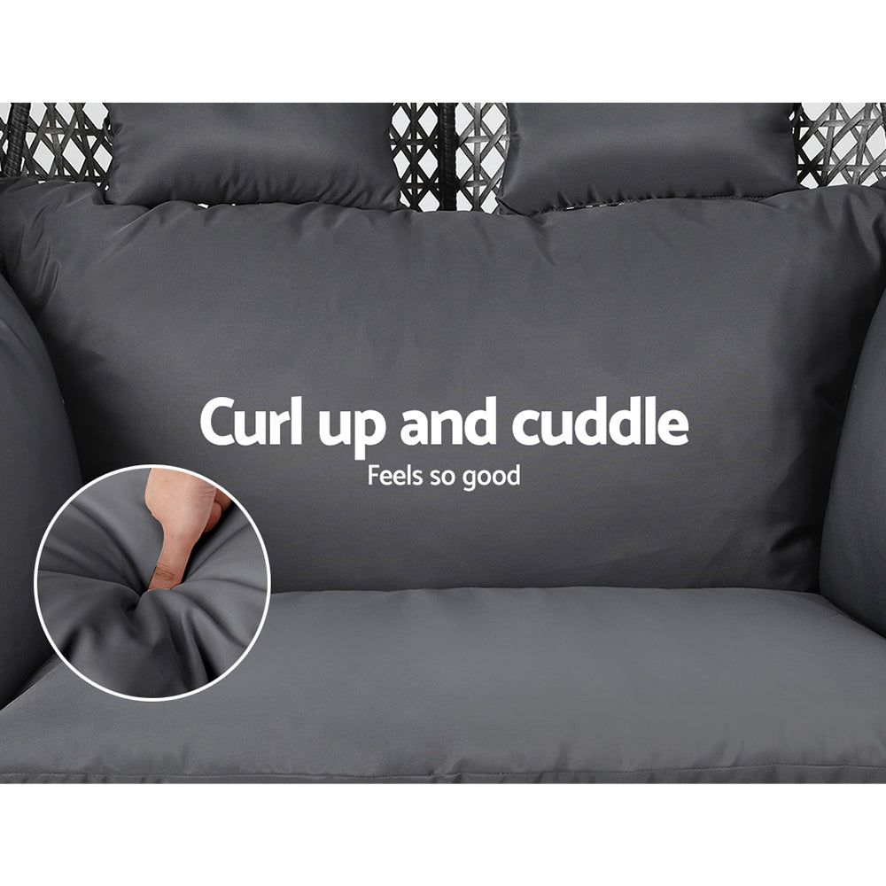 Gardeon Outdoor Egg Swing Chair Wicker Furniture Pod Stand Cushion 2 Seater Grey
