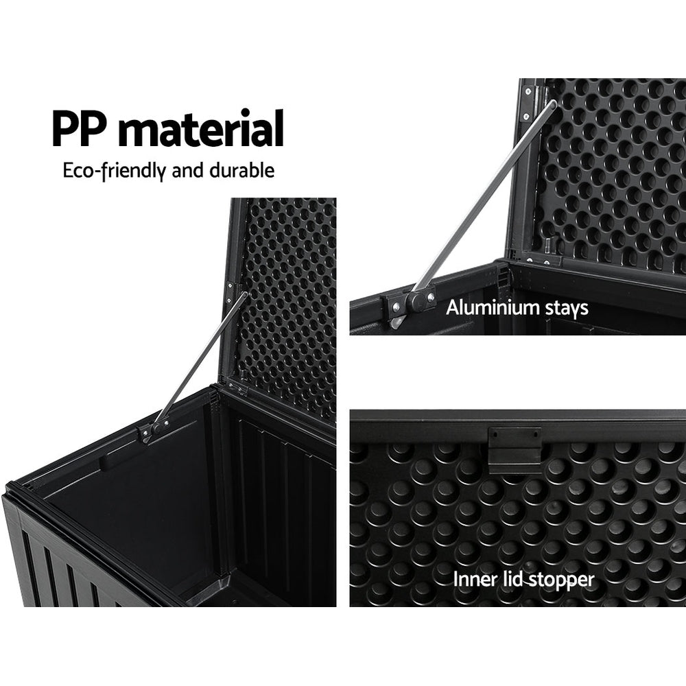 Gardeon Outdoor Storage Box Container Garden Toy Indoor Tool Chest Sheds 270L Black