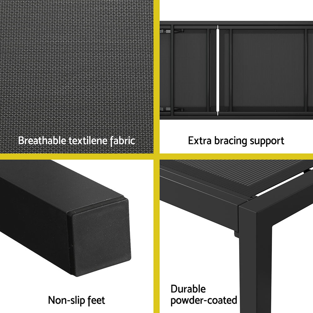 Gardeon Sun Lounge Outdoor Lounger Aluminium Folding Beach Chair Wheels Black