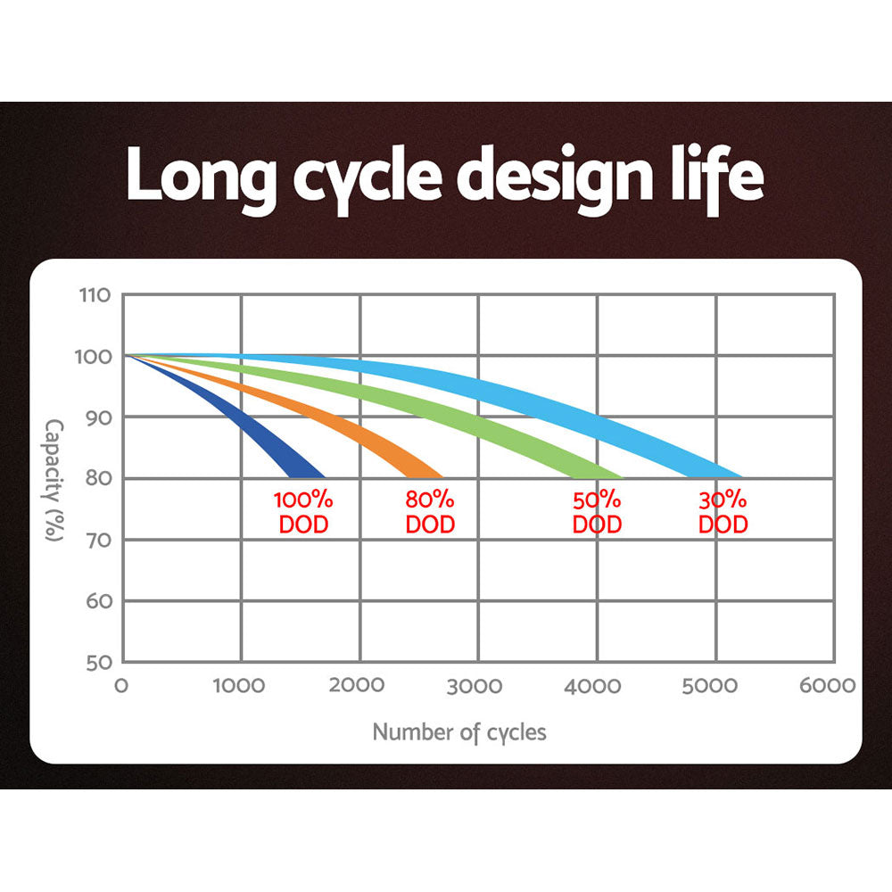 Maximum cycle life: 5000 cycles (@30% DOD)