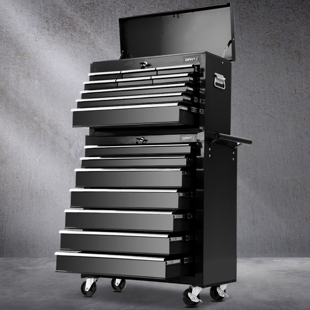 Giantz 16 Drawer Tool Box Cabinet Chest Trolley Toolbox Garage Storage Black