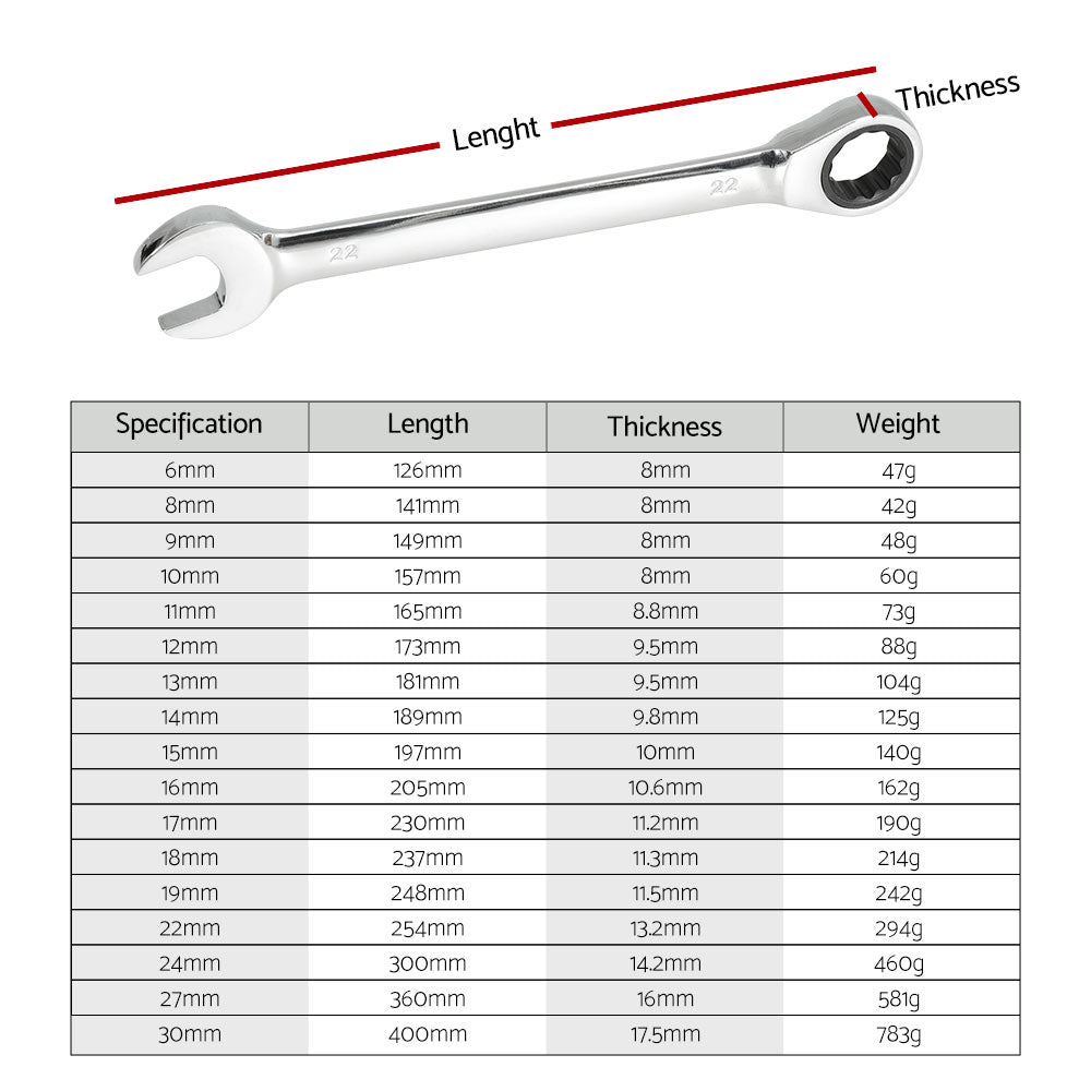 Giantz 17pcs Ratchet Spanner Set Metric 6MM-30MM