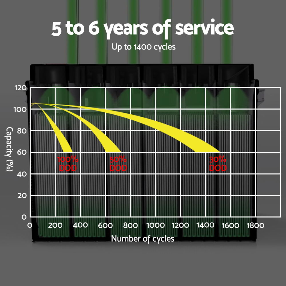 Maximum cycle lIfe: 1400 cycles (@30% DOD)
