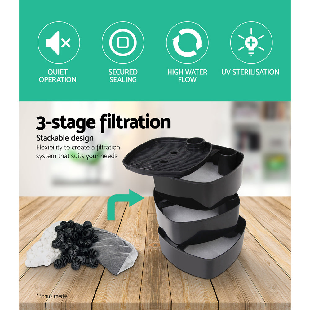 Once you start filtering your tank, you will begin to see clearer and purer waters and be able to take active control over your water characteristics. Best of all, it has a built-in UV steriliser light to expose passing water to lethal doses of ultraviolet and effectively kill many microorganisms.