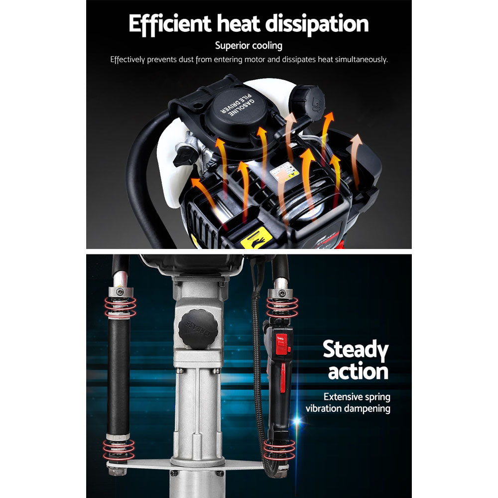 Giantz Petrol Post Driver 38CC 4-Stroke Rammer Pile Star Picket Fence Hole Black