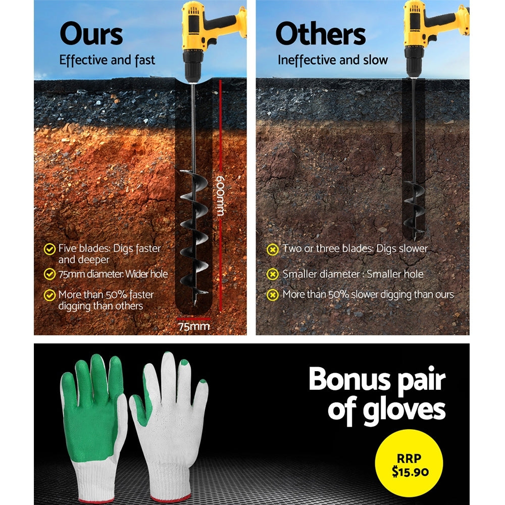 GIANTZ Power Garden Auger Small Earth Planter 75 X 600MM Black