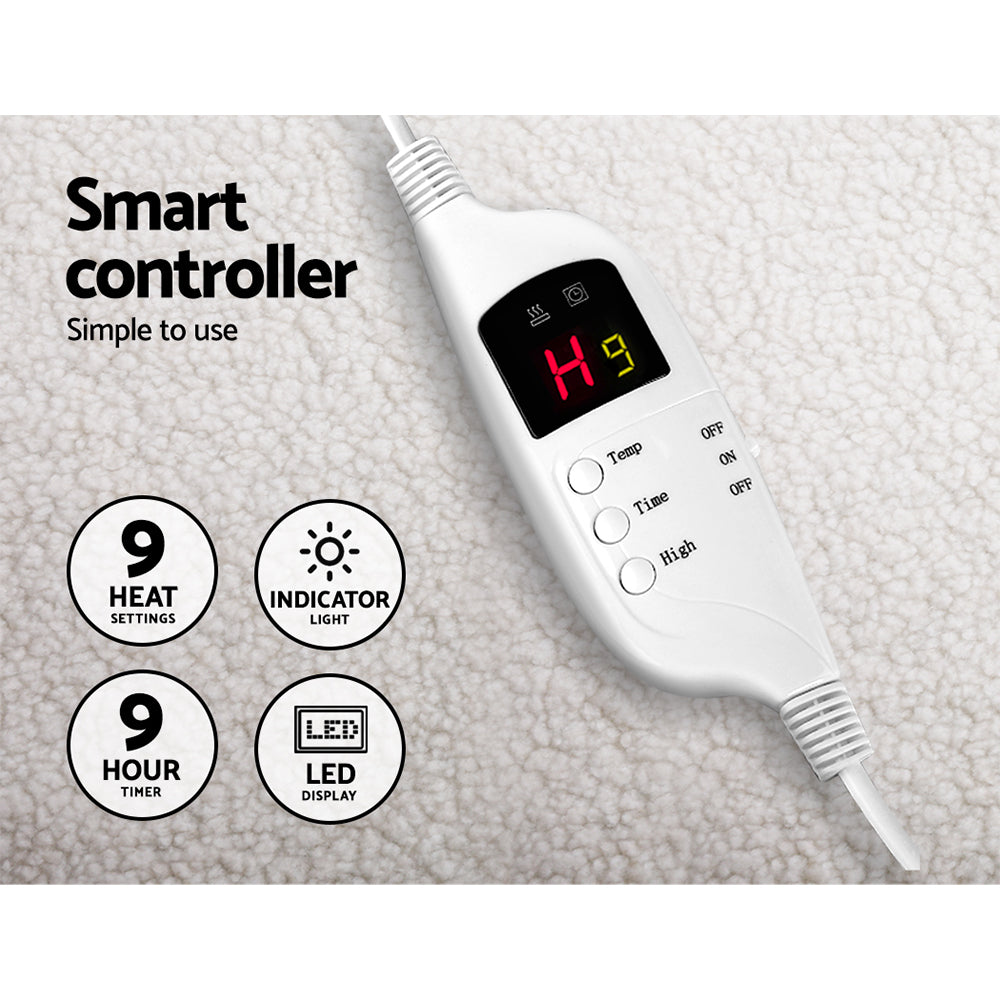 Sleep better every winter night knowing that you have our Giselle Fully Fitted Fleecy Fabric Electric Blanket to help you stay warm and cosy throughout your forty winks. Featuring a fleecy synthetic faux wool underlay that feels wonderfully soft, the electric blanket allows you to set up to nine different temperature settings using its detachable controller with LED display. A timer also lets you set the operation time of the blanket from one to nine hours. And even if you forget to switch the electric blanket off, there is automatic shut-off and overheating protections for total peace of mind. Best of all, the electric blanket is machine washable. Simply unplug it (make sure to detach cable from electric blanket as well) and toss it into the washing machine for a good clean wash. Never let the chill and cold ruin your precious sleep again when you can have the warmth and comfort of a fleecy electric blanket to keep you company all night long.