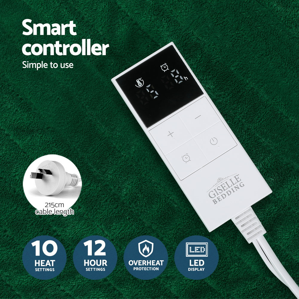 Giselle Electric Throw Rug Heated Blanket Double Sided Green