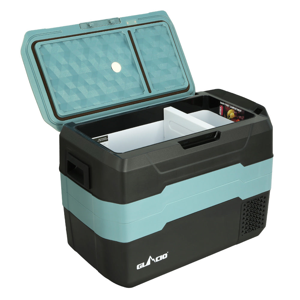 In the market for a portable fridge or freezer? Our exceptional Glacio Portable Fridge/Freezer is one cool device with extraordinary performance. Perfect for use on the road or indoors, the fridge easily plugs into any 12V, 24V or 240V power point for the powerful compressor to kick in its cooling prowess. A simple LCD display with even simpler operational setting allows you to start the refrigeration process easily: just turn on the power, set the temperature, and the built-in microcomputer will do the rest. The 55W compressor is very energy-efficient, about 1.32kWh for every 24 hours of use. When running on DC power, the battery has a 3-stage battery charging protection that cuts off charging once the voltage setting is attained to ensure longer-lasting battery life. The fridge has plenty of space for all your food and drinks, and you can change the compartment size depending on your needs with the removable insulation board. The heavy-duty exterior is designed to handle all the knocks and bumps of a road trip and comes with a USB port, safety locks, cup holder and a lifting handle for convenience. With so much going for it, our Glacio Portable Fridge/Freezer is surely your choice of a reliable cooler for all your outdoor (or indoor) escapades.