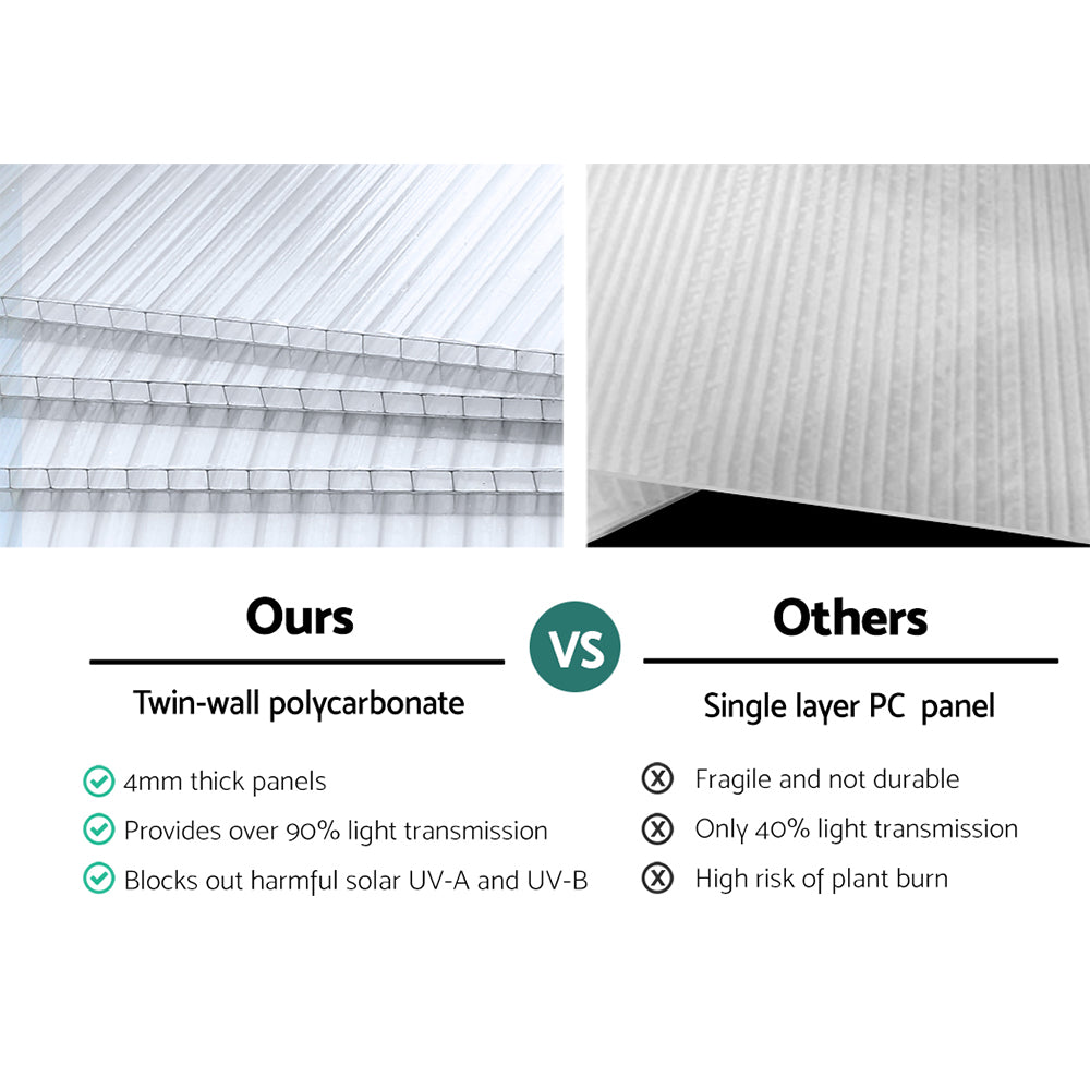 Green Fingers Greenhouse 3x2.5x1.95M Aluminium Polycarbonate Green House Garden Shed