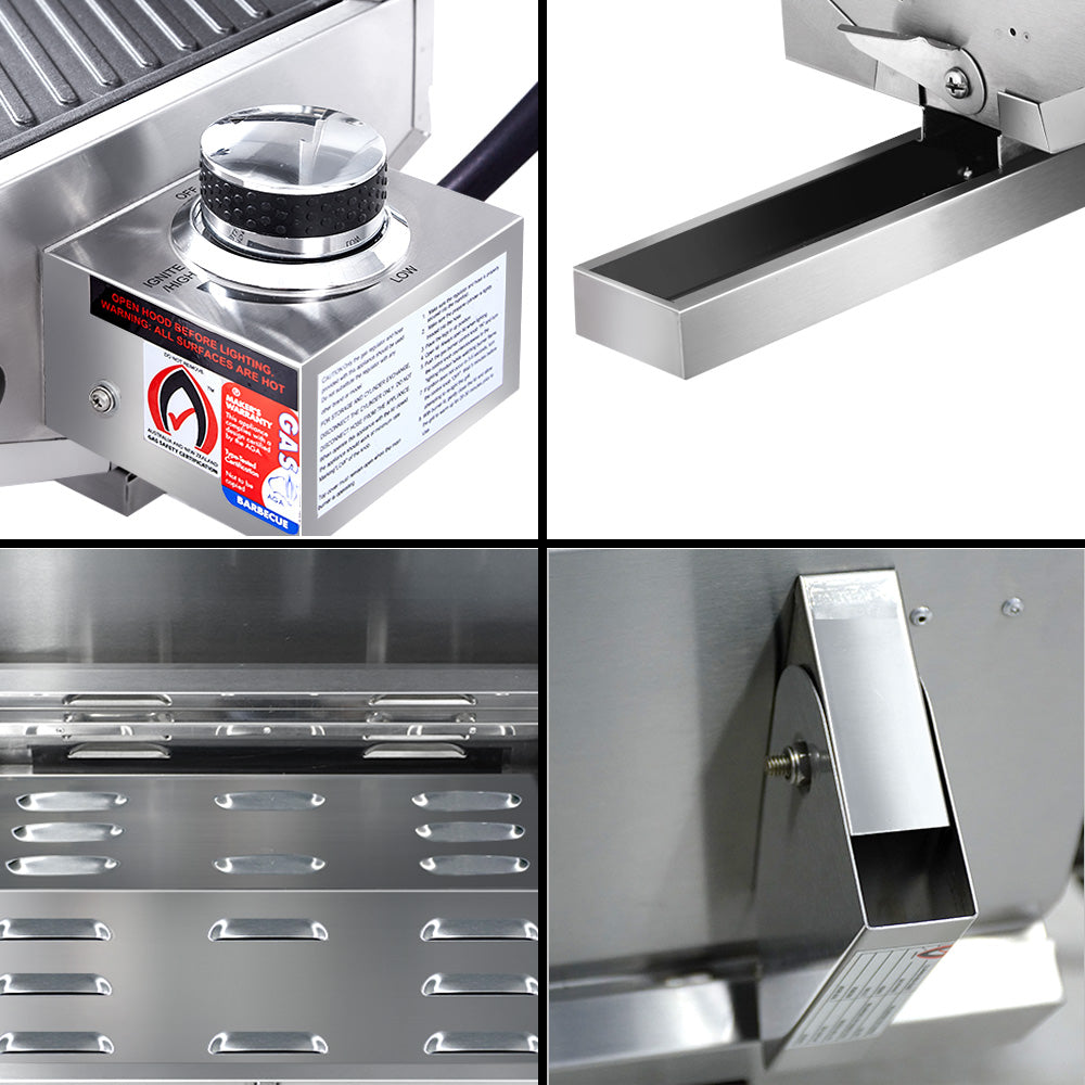 Have BBQ will eat. And the Grillz Portable Gas BBQ is just perfect for a BBQ anytime, anywhere. Made from durable and high quality stainless steel, the BBQ comes with a convenient fold-up design with retractable steel legs, large front carry handle and a locking lid. Great features include a double-face grill plate for different styles of cooking, a 12,000BTU stainless steel U-shape burner with high heart conduction for better efficiency, safe piezo electric twist start ignition, integrated thermometer for enhanced cooking, grease collection tray for easy cleaning after and a dedicated flame tamer to prevent food waste from dropping onto the burner. Together with its large cooking area, the Grillz Portable Gas BBQ is right at home with sumptuous meals ready in minutes.
