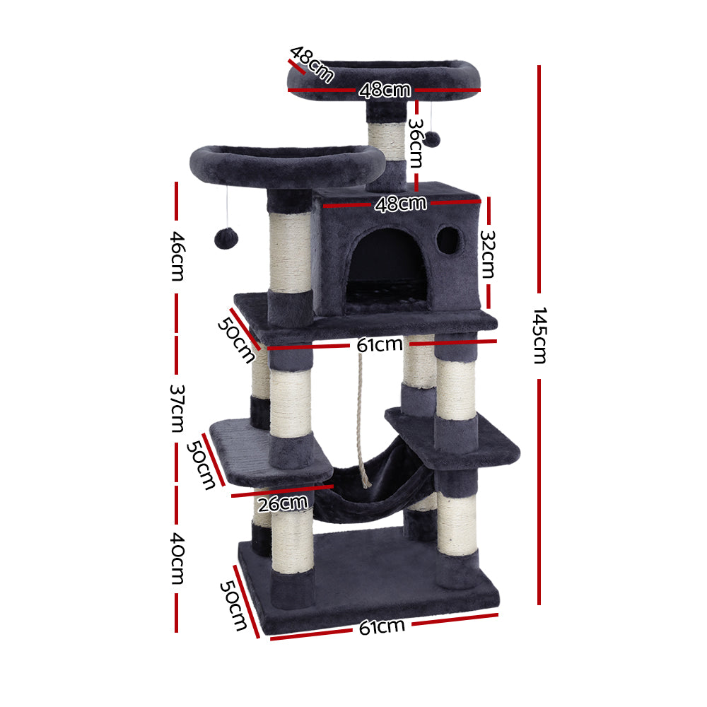 i.Pet Cat Tree 145cm Tower Scratching Post Scratcher Wood Condo House Large Bed