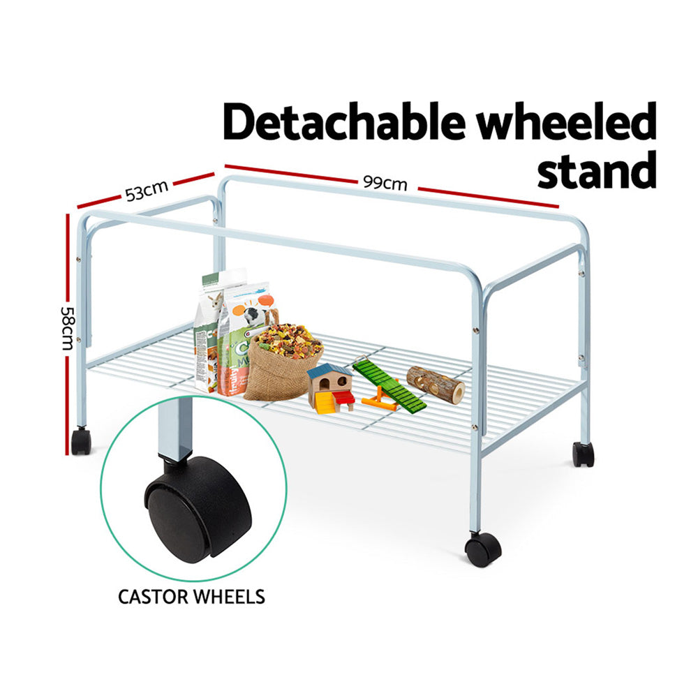 A perfect home for your beloved rabbit, guineas pigs or other small animals. Giving them plenty of room to play and nap. It's a secure environment that make them feel safe and happy at all times. Built with heavy duty powder coated frame, you can be rest assured that this will be a long lasting home for your little pets. Equipped with secure locks and small-spaced wires, you don't have to worry an escaping pets. Designed with top and side wide entrance that allows you to take them out easily or pat them while they're inside. For your convenience, it's built with castor wheels for easy moving and detachable top to clean the base anytime.
