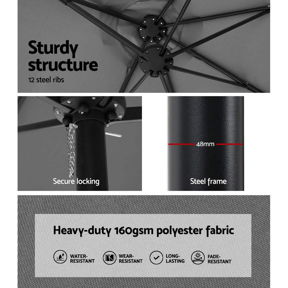Instahut 4.57m Outdoor Umbrella w/Base Stand Beach Pole Garden Tilt Charcoal