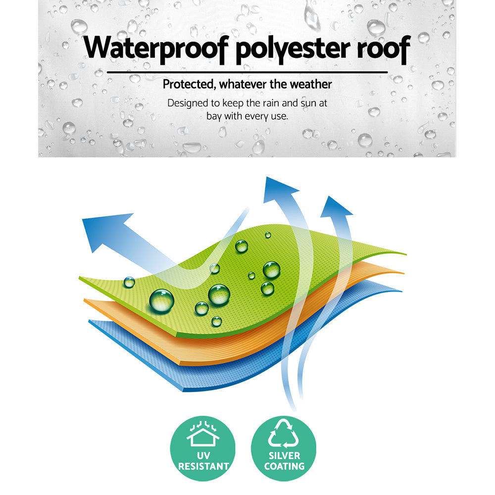 In your garden, at an outdoor BBQ or sports event, on your travelling vacation or on market days, our INSTAHUT Pop-up Gazebo is your ideal solution for instant cover outdoors. With a wide roof coverage of 300cm by 600cm, the exceptional cover is made of durable silver coating 210D Oxford fabric that is both UV and water resistant. Height can be easily adjusted with four pre-sets, ranging from 203cm to 268cm. It also features two zipped entrances and insect-proof mesh walls. Plus, the powder-coated steel frame, cross-bar frame work and steel supporting legs mean that this gazebo is no easy pushover from man or weather. The gazebo can be set up in minutes and kept away just as quickly in your car boot, van, trailer, garage or shed. Thanks to its portable design, quick and convenient hook and loop attachments, fast release and fasten rings and handy nylon inserts for hassle-free use.