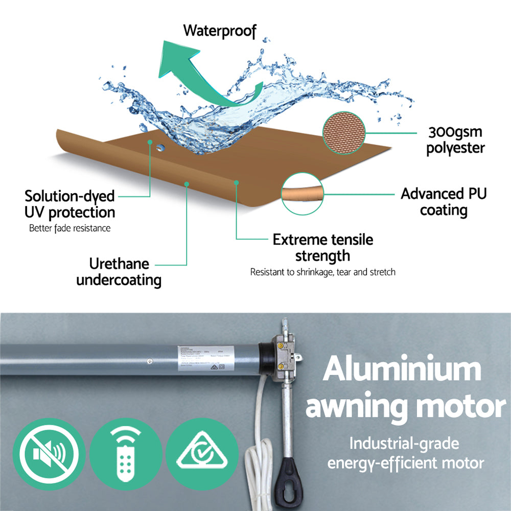 Instahut Motorised 4x2.5m Folding Arm Awning - Beige