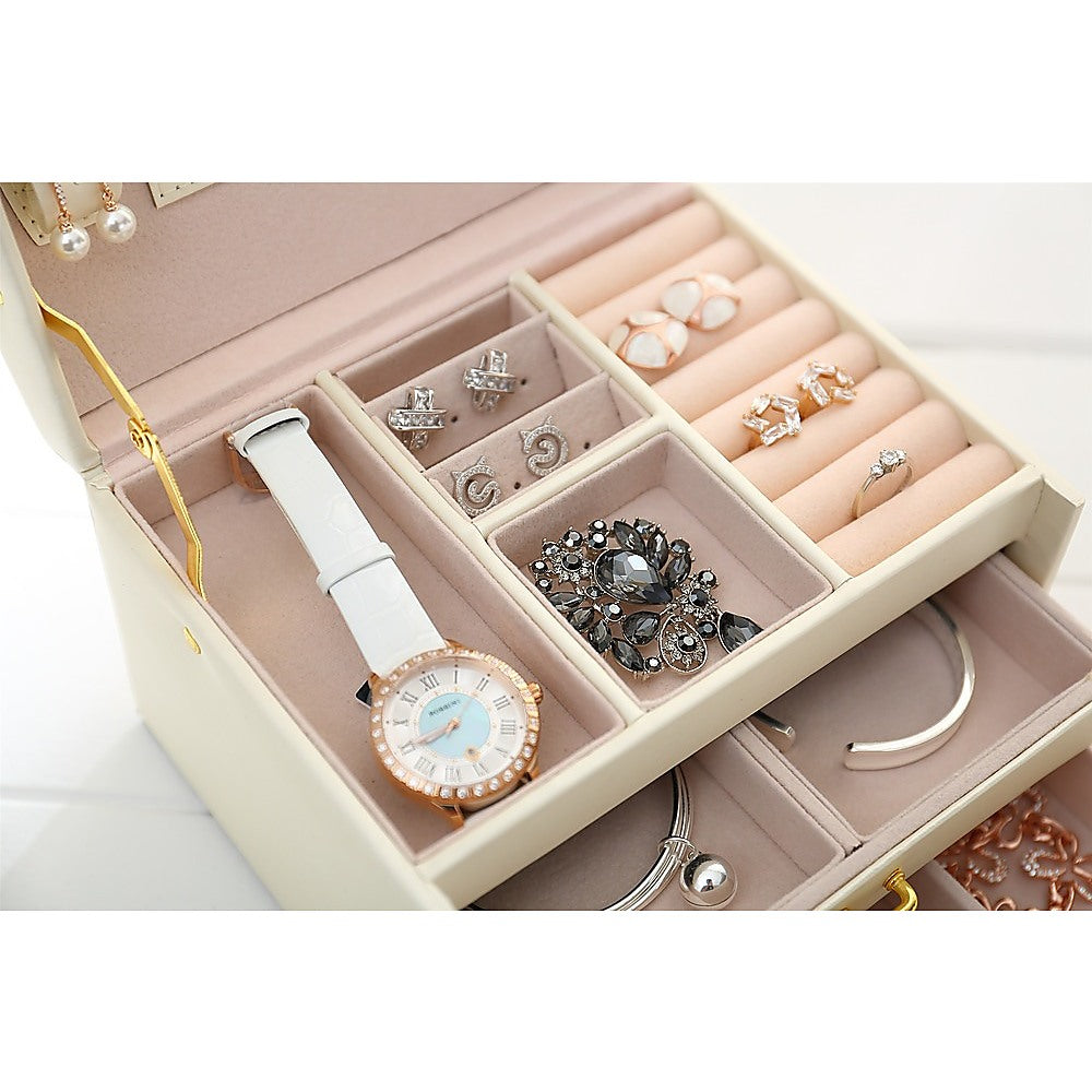 Designed for travelling as well as home storage, this lovely jewellery box features an easy-carry handle so you can take your favourite eye candy with you wherever you go. It locks securely so you never have to worry about someone stealing your favourites.