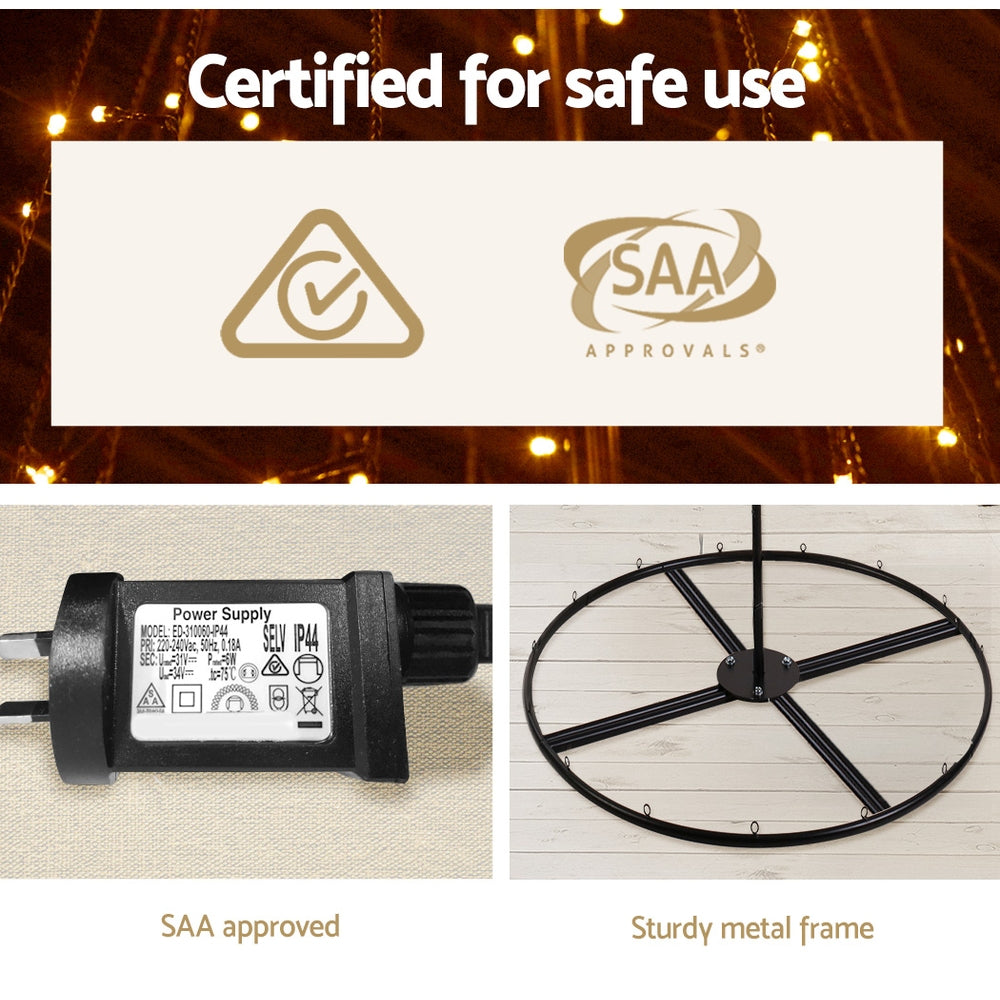 Create a dazzling display of Christmas spirit with our Multi-Colour LED Christmas Tree. It's an extraordinary lighting that you can imagine litting outside on your pathways or driveways for the magical Christmas scene.Rated for both indoor and outdoor use, this Christmas Tree is in a steady cone shape on its powder coated steel frame. Wrapping around is 400pcs of LED light, that will light up your spirit during this holiday season. Have fun with the easy set-up and 8 different lighting effects, create one of a kind Christmas displays. Comes with 10m lead cable, you can place it anywhere without the need of extension cable.Stand tall and proud with its 3.6m height, plan your Christmas decoration this year with our Multi-Colour LED Christmas Tree dazzling lights.