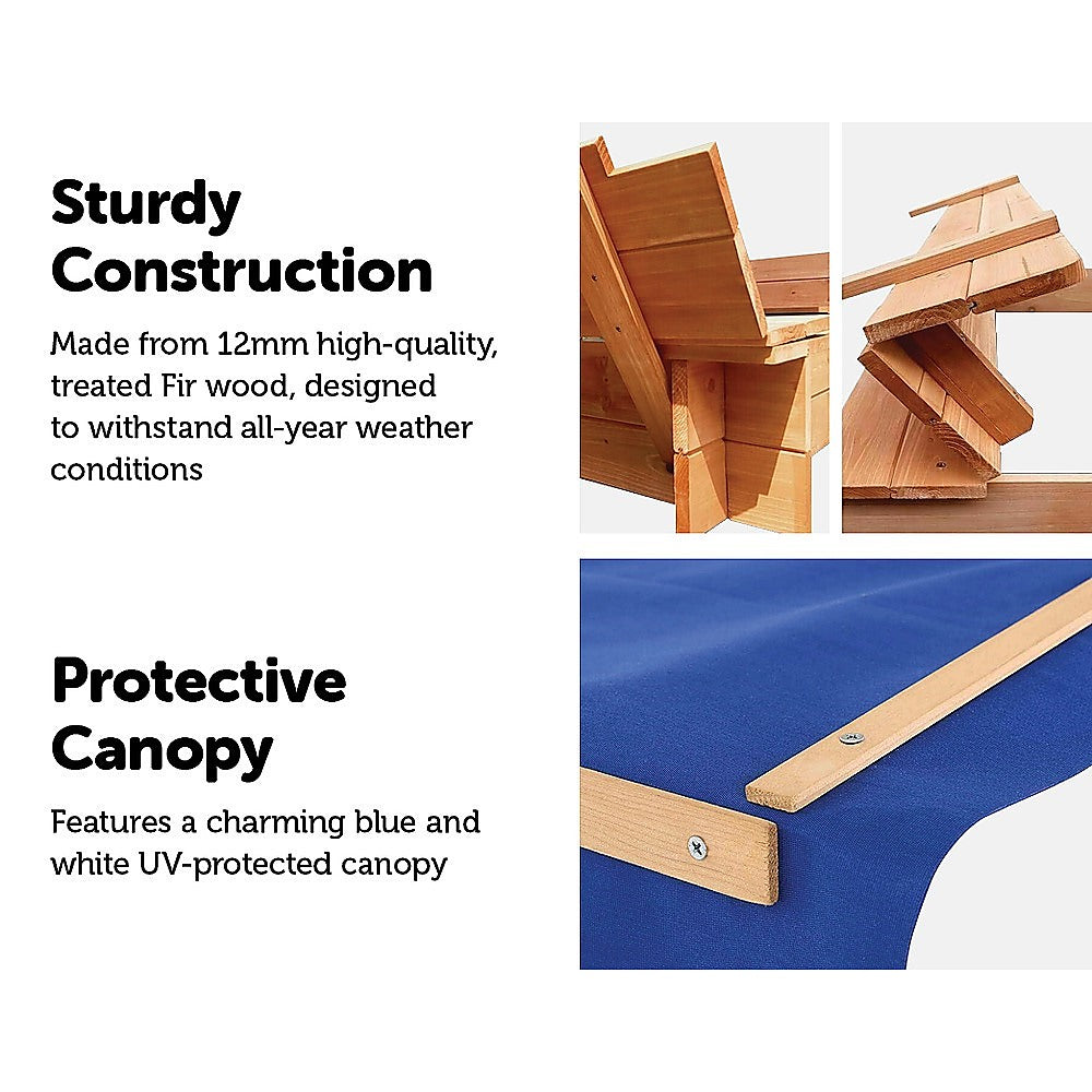 Your kids will enjoy hours of fun but will stay cool and shaded in this delightful canopy-covered sandpit!.