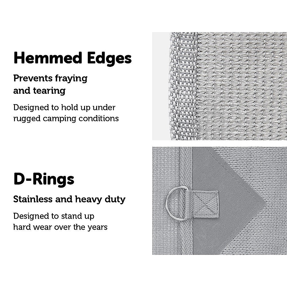 Hemmed at the edges to prevent fraying, the material holds up under rugged camping conditions, while the heavy-duty D-rings stand up under hard wear over the years.