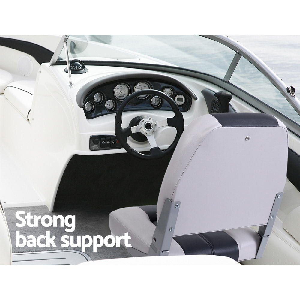 Have more fun when out with your water craft with this pair of premium Folding Boat Seats. Made of high quality premium plastic and UV-resistant PVC, these Boat Seats are made to perform in all-weather conditions. The wind, the rain and the sun and even salt water do them no harm.