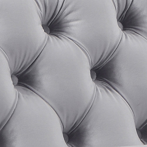 Single Seater Grey Sofa Classic Armchair Button Tufted in Velvet Fabric with Metal Legs