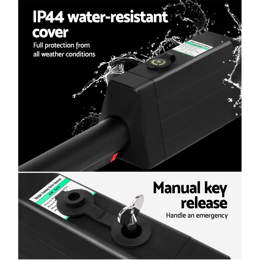 Introducing our Gate Opener, designed for effortless and eco-friendly gate control. This advanced system ensures a smooth operation with gentle start and stop features, enhancing the lifespan of your gate. Safety is paramount; it automatically stops or reverses upon detecting any obstruction, ensuring peace of mind. Equipped with an emergency release key for power failures and a programmable auto-close feature, it offers convenience at your fingertips. Included remote control makes access seamless and secure.