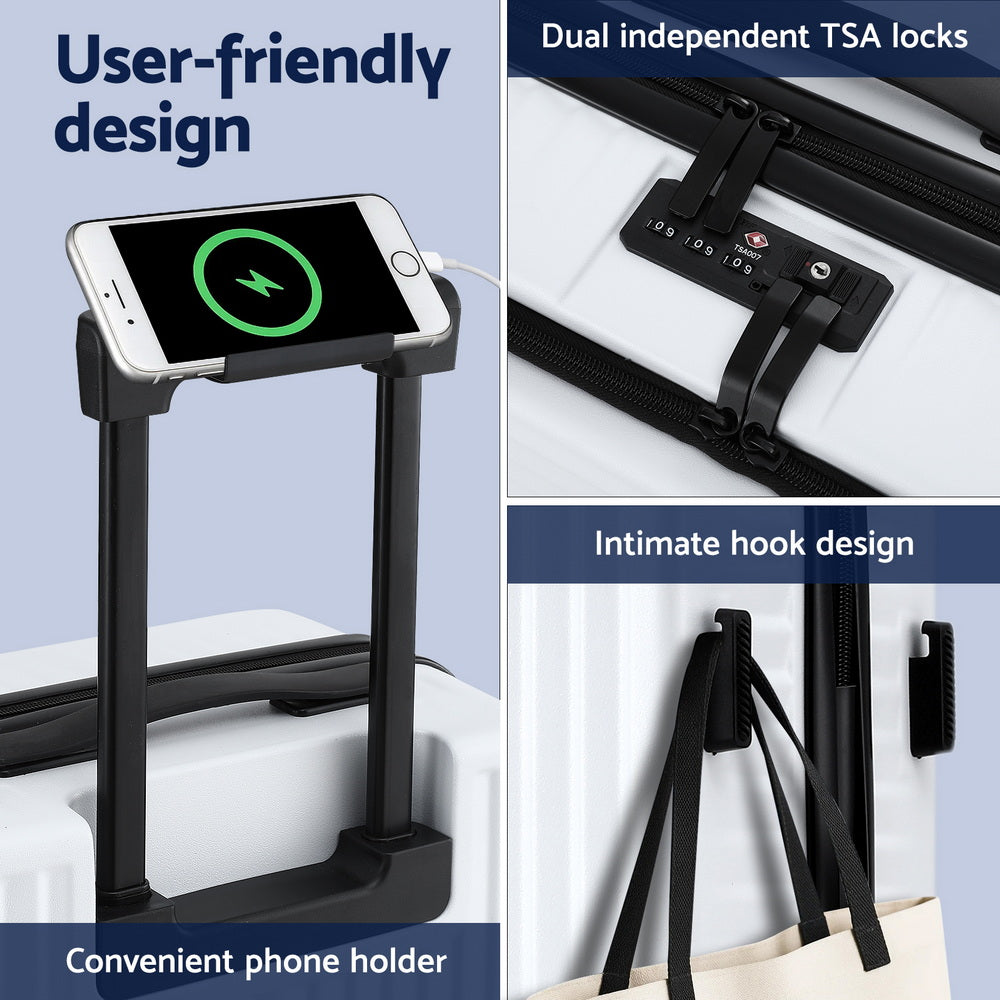 Wanderlite 20inches Luggage Suitcase Front Pocket Travel Carry On Dual TSA White