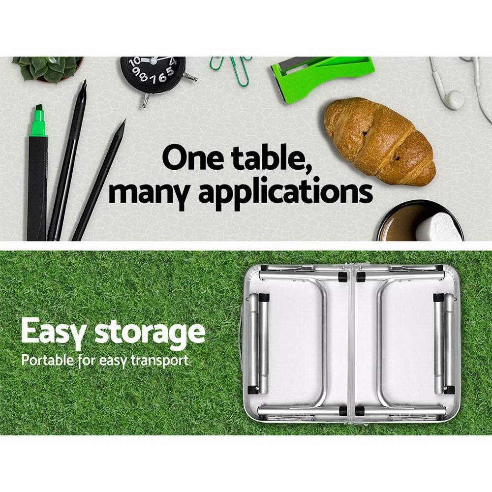 Lightweight and portable, the Weisshorn Sigma Beta Folding Camping Table is the perfect table to have for all your outdoor escapades or used as supplementary household furniture. This foldable table is absolutely handy in kitchens, on patios, in gardens and on picnics or camping trips. Made of strong aluminium throughout, the camping table can handle up to 30kg in weight with its rust-resistant MDF table top. The table height can also be easily adjusted for high-leg use as a dining table or short-leg use when sitting on the floor or picnic on grass. Not least, the rounded corners ensure the camping table is safe to use around kids and adults at all times. With a convenient carry handle, the compact Weisshorn Sigma Beta Folding Camping Table is ready to go wherever your adventures take you.